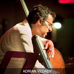 Depuis dix ans déjà, Adrian Vedady est une force vive du milieu de la musique créative. Contrebassiste montréalais réputé pour son sens du swing et ses solos empreints de lyrisme, il est un collaborateur privilégié du saxophoniste Yannick Rieu et du pianiste François Bourassa. Il s’est également fait remarquer aux côtés des saxophonistes Ravi Coltrane et David Binney, du guitariste Jake Langley et du trompettiste Tiger Okoshi. L’année 2009 marque le lancement de son premier CD « In Three Acts » sur étiquette Elephant Records. Dix compositions originales y sont interprétées par trois ensembles. Dans les mois à venir, Adrian partira en tournée au Mexique avec François Bourassa, enregistrera avec Jeanne Rochette et François Bourassa, se produira au Festival de jazz de Québec avec les quartets de Yannick Rieu et de Frank Lozano et collaborera avec le pianiste new-yorkais Marc Copland. À deux reprises, en 2005 et 2009, il a reçu une bourse en développement, volet recherche et création du Conseil des arts et des lettres du Québec. Il se consacrera bientôt à l’écriture des compositions de son deuxième album.